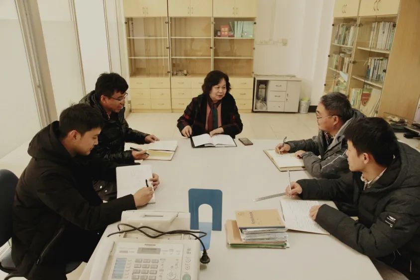 (孟婥老师(左三)和团队师生一起讨论)