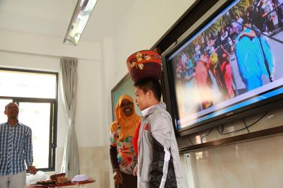 虽然安排的课程只有短短半小时,但为了把课程讲好,“洋老师”们提前做足了准备。除了制作精美的课件,收集丰富的国家知识图片,他们还准备了漂亮的民族服饰,并通过清晰的板书以及生动的授课风格给附校学子留下了深刻的印象。吉尔吉斯斯坦留学生意利亚斯在授课后,就将自己心爱的“卡尔帕克”高冠帽(吉尔吉斯斯坦男性的传统头饰)赠予学生,成为学生爱不释手的珍贵礼物。学生们表示,“洋老师”在授课中各具特色,与学生亲切互动,特别是通过丰富的多媒体手段为学生们分享自己家乡的宣传视频,让学生们跟着优美的画面仿佛身临其境领略各国风采,使课堂一下子变得灵动起来。
