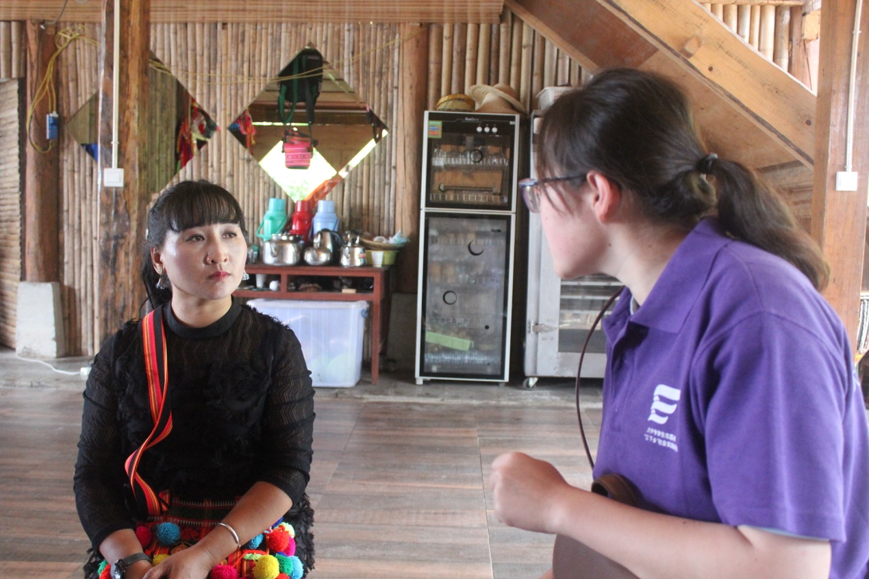 图为人文学院“小脚丫”实践团采访裕固族表演嘉宾