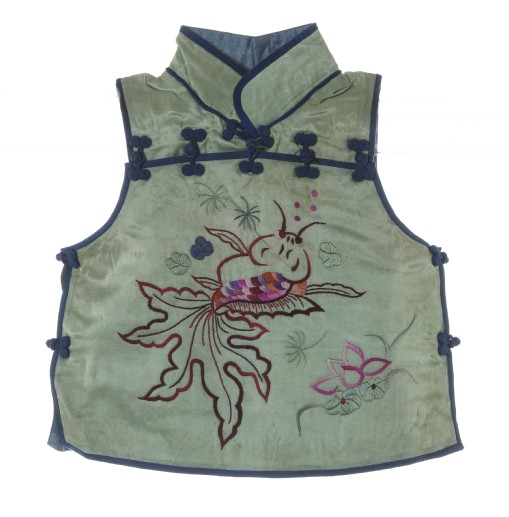 (浅绿缎彩绣金鱼水草纹一字襟坎肩 19世纪后期)