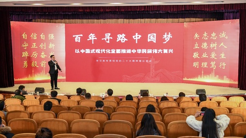 (纺织学院辅导员魏金婷在指导学生理论宣讲团活动现场)